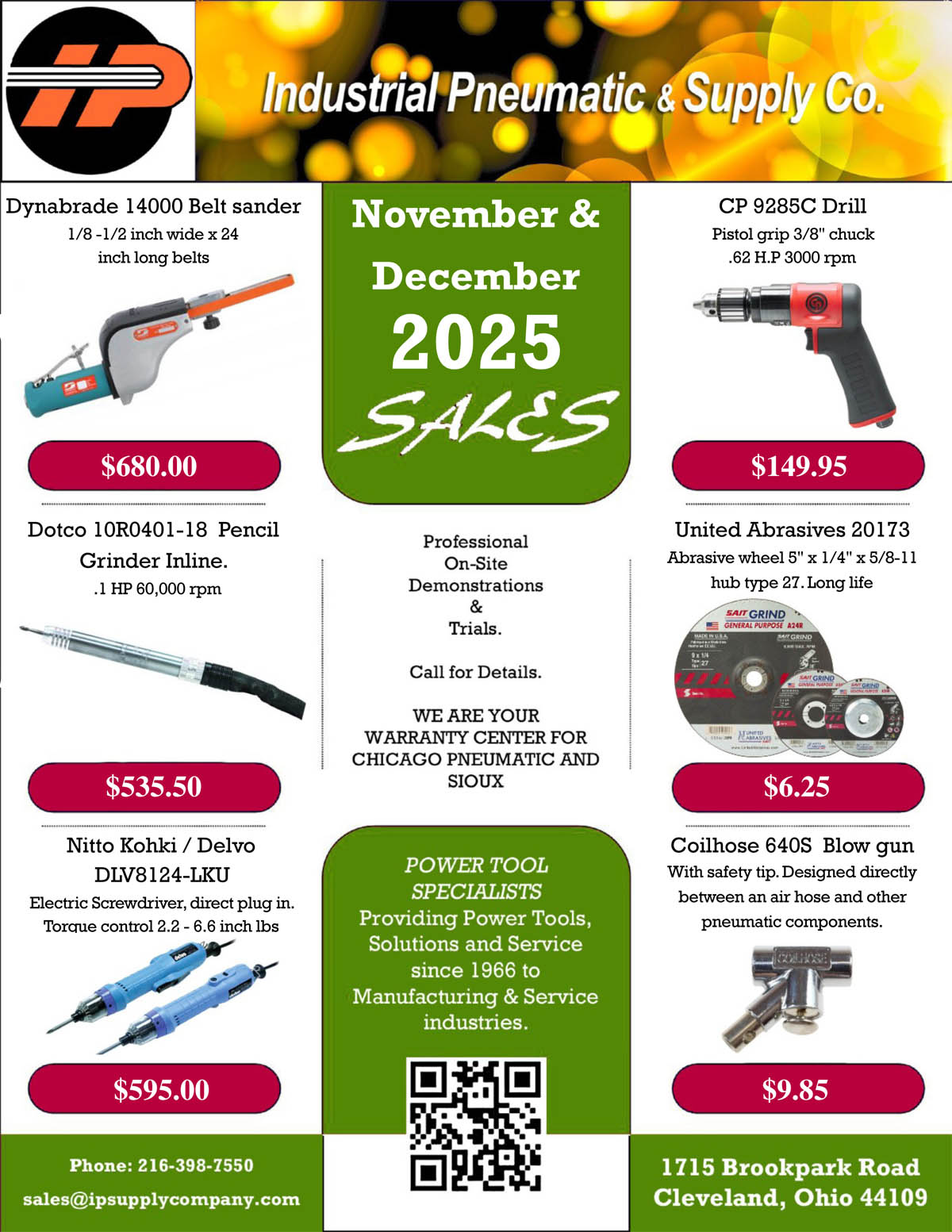 Industrial Pneumatic & Supply Company has been providing Power Tools, Solutions and Service since 1966 to a wide range of customers in various Manufacturing & Service industries. With