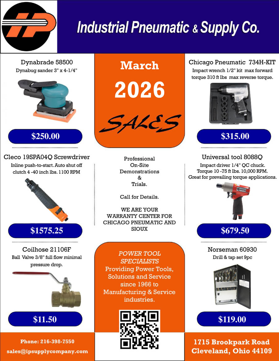 Industrial Pneumatic & Supply Company has been providing Power Tools, Solutions and Service since 1966 to a wide range of customers in various Manufacturing & Service industries. With